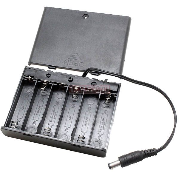 Відсік для 6-ти елементів 9V живлення АА, роз'єм 5,5 2,1, закритий корпус з вимикачем
