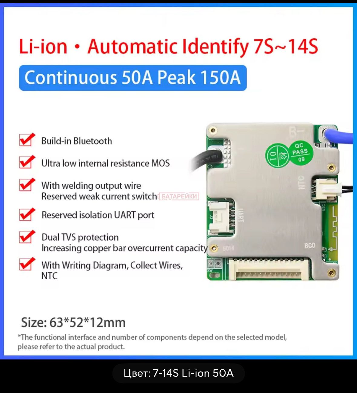 Smart BMS 24V 36V 48V 7s-14s 7S 8S 9S 10S 11S 12S 13S 14S 50A Li-ion